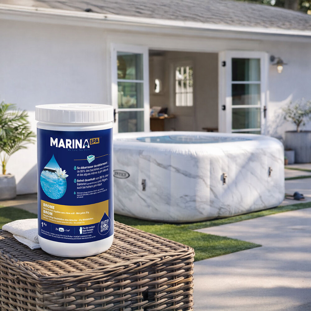 Contrairement au chlore, le brome conserve son efficacité optimale à haute température (35-40 °C) – la plage idéale des spas chauffés. Vous bénéficiez également d’une meilleure stabilité du pH et d’une absence totale d’odeur désagréable, pour des séances de détente véritablement agréables.