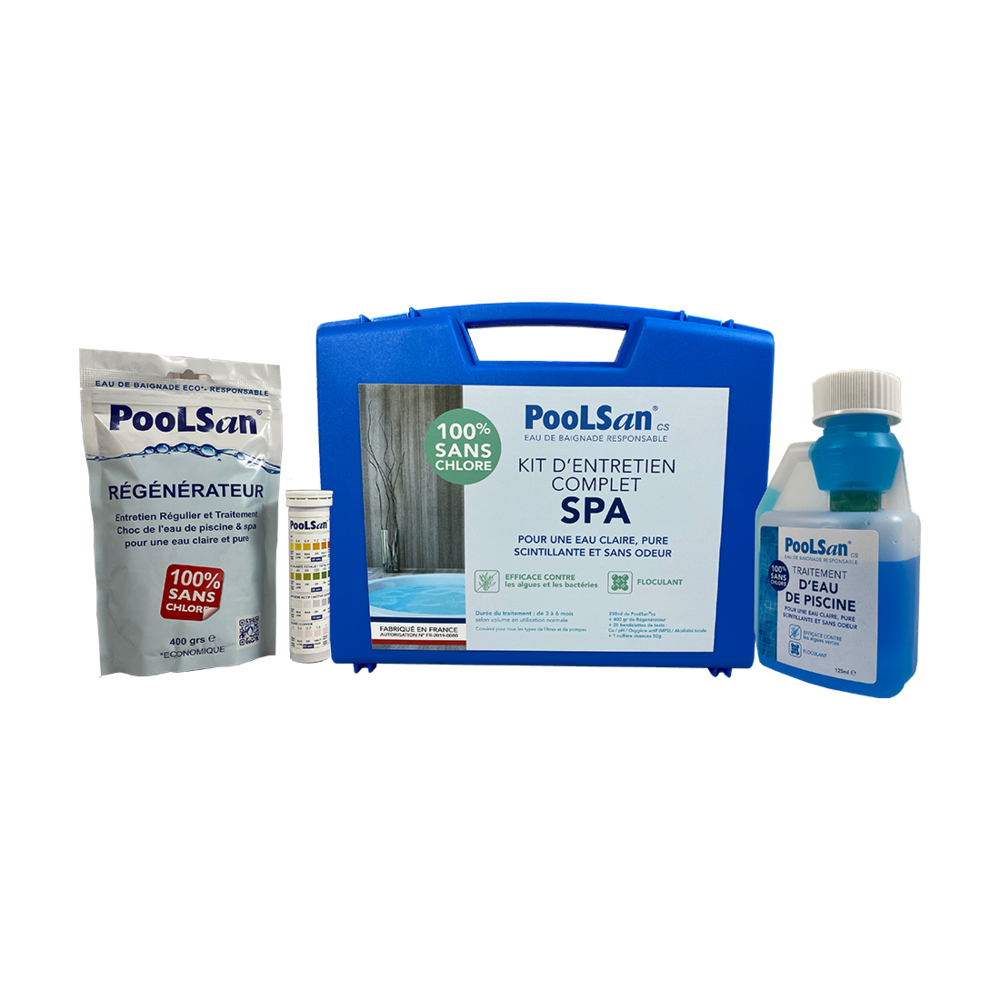 Découvrez une alternative révolutionnaire au chlore avec le kit de traitement PoolSan. Grâce à sa formule brevetée à base d’ions cuivre et argent, vous bénéficiez d’une protection complète et naturelle de votre eau de spa. Ce système agit simultanément comme algicide, bactéricide, fongicide et floculant, garantissant une eau cristalline et saine sans les inconvénients du chlore traditionnel.