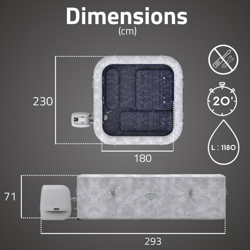 Vous profitez d’une véritable station de relaxation avec un système de massage haut de gamme : 10 buses HydroJet orientables pour des massages puissants et ciblés, complétées par 180 diffuseurs AirJet diffusant de fines bulles apaisantes depuis le fond du spa. Cette double technologie soulage efficacement le dos, les jambes et les pieds, tandis que les trois types d’assises ergonomiques intégrées permettent à chaque utilisateur de trouver sa position idéale de détente.