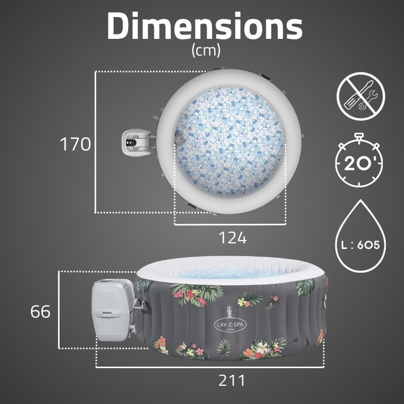 La pompe multifonction incluse gère l’ensemble de l’équipement : gonflage, chauffage, filtration et activation du massage. Facilement accessible depuis l’intérieur du spa avec porte-gobelets intégrés, elle simplifie votre expérience. Le diffuseur ChemConnect assure une distribution homogène du chlore pour une eau toujours propre et équilibrée. Une couverture isolante renforcée complète le package pour préserver la chaleur et protéger votre spa lorsqu’il n’est pas utilisé.