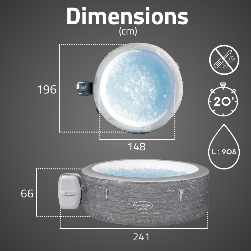 Le système Freeze Shield assure une protection complète en hiver, permettant à votre Budapest de rester en place sans crainte de gel. Grâce à l’application Bestway Smart Hub, vous pouvez programmer des cycles de filtration optimisés et des minuteries d’économie d’énergie adaptés à votre utilisation. Un entretien régulier et une gestion intelligente via l’app garantissent un spa toujours prêt à vous accueillir.