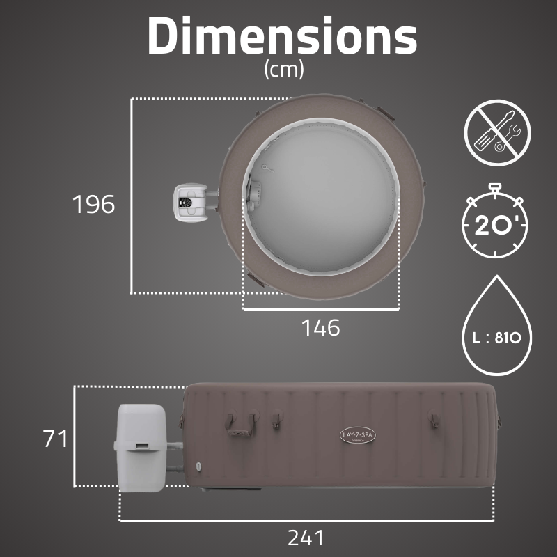 196 cm (Ø) x 71 cm (hauteur) |