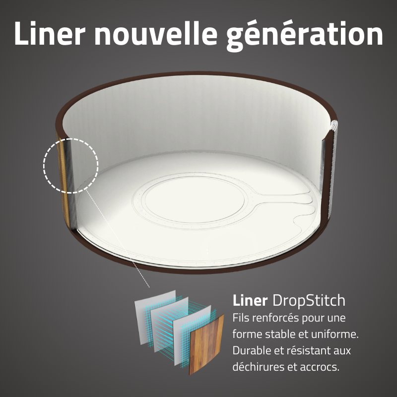 Conçu pour durer toute l’année, le Helsinki bénéficie d’une structure en FortiFiber, un matériau ultra-résistant composé de milliers de fils tissés offrant une rigidité comparable à celle d’un spa en dur, tout en restant léger et facilement déplaçable. La fonction antigel Freeze Shield assure un chauffage automatique qui prévient la congélation de l’eau, vous permettant de profiter de votre spa même en plein hiver.